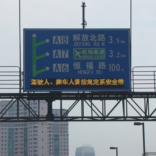 ● 高速公路可变情报板,为驾驶人员提示目前的道路信息, 如前方施工、车祸地点、强风、浓雾等警示标语;