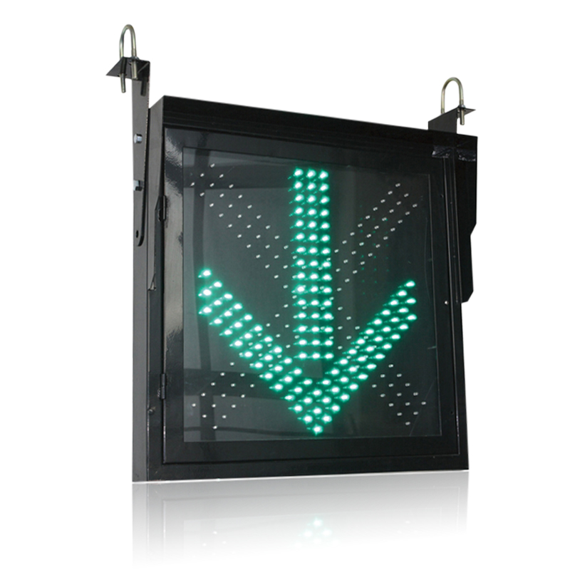格莱光LED车道指示器为高速公路,桥梁、隧道机电工程标志性专用配套设备。采用红绿2色超高亮交通LED灯珠发光源,安装在每一车道上方的雨棚上,显示红X,绿↓标志车道通行状态,指引司机正确、安全通行。该产品符合国家交通行业JT/T431-2000(高速公路LED可变信息标志技术条件)标准,并获得国家交通行业权威检测机构颁发的批量生产安装准用证书和检测报告。根据室外全天候连续工作环境设计,具有可视性远广,低功耗,寿命长等特性。