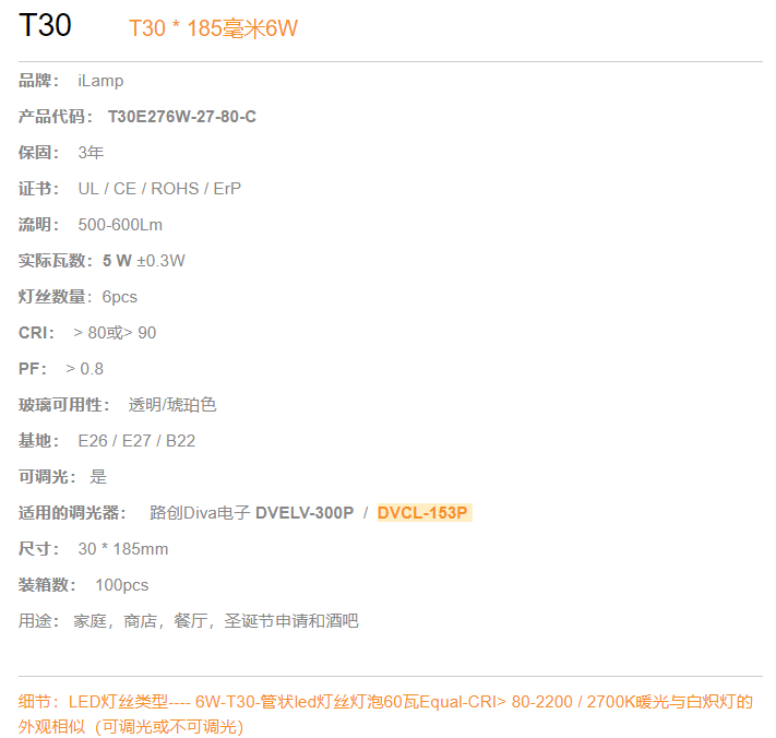 T30 185毫米6W