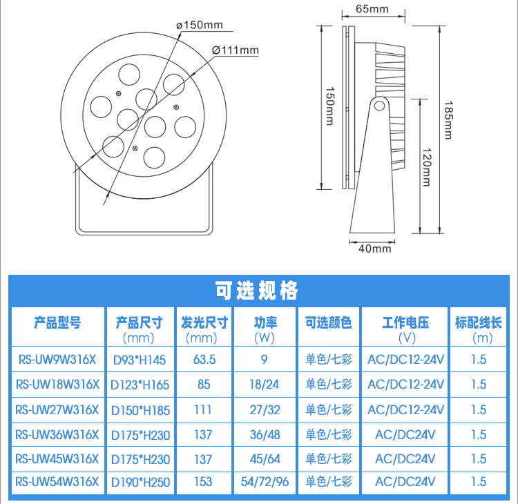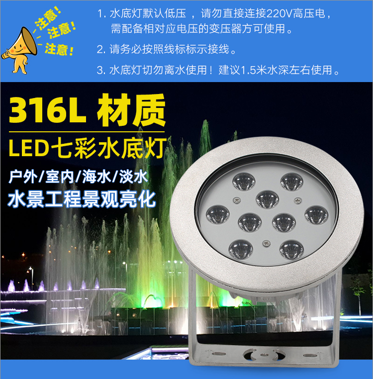 led喷泉灯 316L不锈钢 rgbw七彩水下 水底灯