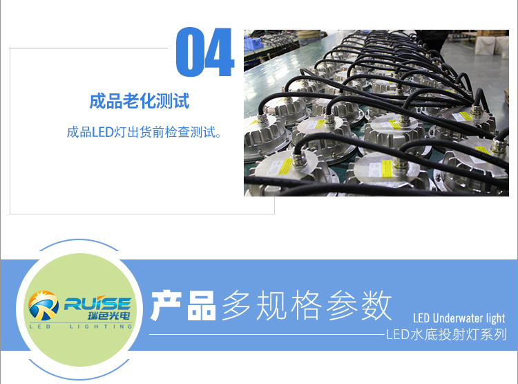 深圳瑞色光电有限公司成立于2010年,专注户外景观灯具研发生产,技术方案提供。注册资金520万,是深圳市高新技术企业和ISO9001:2015认证企业。 公司产品有水底灯,喷泉灯,泳池灯以及地埋灯等户外高端产品。所有产品在防水功能,安全性能,电气参数,光学参数,方案设计等方面都达到行业领先水平,稳步成为国内和国际户外景观照明行业的引领者。 我们占地3000平方米,拥有一流的研发技术团队和精湛的专业队伍,获得国家专利证书和软件著作权30多项, 所有产品均通过CE, RoHS, SGS, UL, IP防护等级等认证。并能迅速为客户以及工程商量身定制不同规格需求的产品。 凭借强大的研发能力及稳定的产品性能,我们得到美国,加拿大,西班牙,以色列,俄罗斯等国代理商和工程商的衷诚认可,参与的欧美市政项目200多个。 持续创新,为客户创造价值,是我们永不妥协的选择。真诚与广大客户和工程商携手共创美好未来。