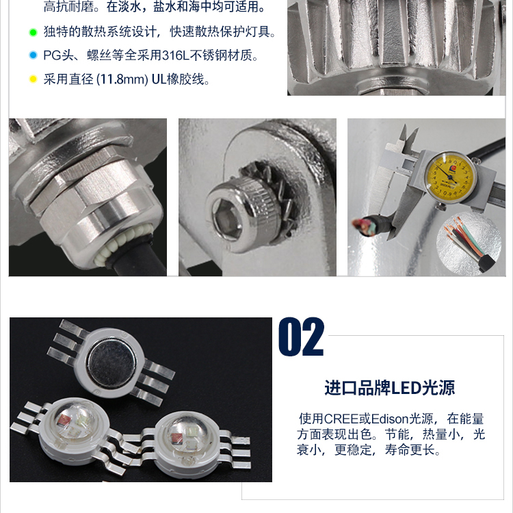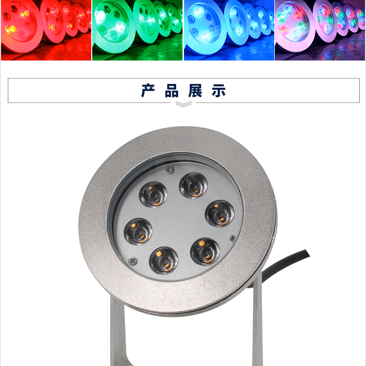 18W水底灯 316L不锈钢七彩自变水下照明 led喷泉灯