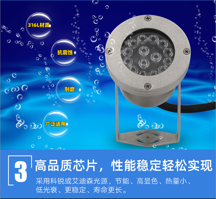 led喷泉灯 水下水底灯 七彩dmx512 水体亮化工程
