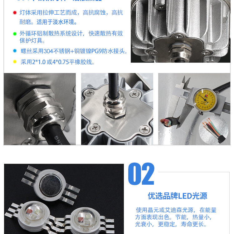 led水底灯 rgb七彩自变dmx512不锈钢 水下喷泉灯
