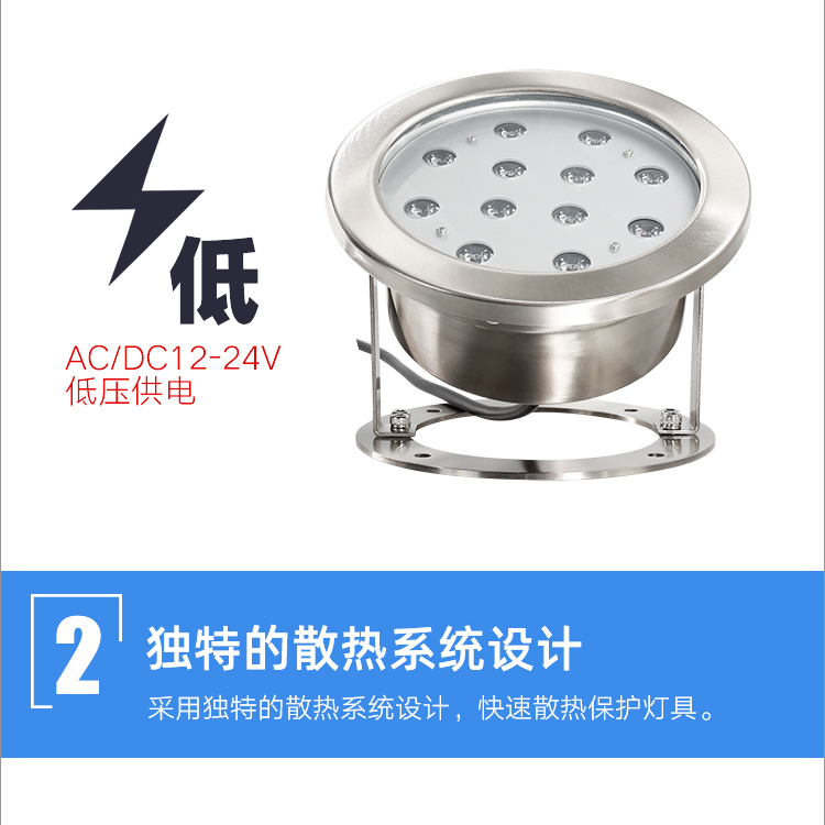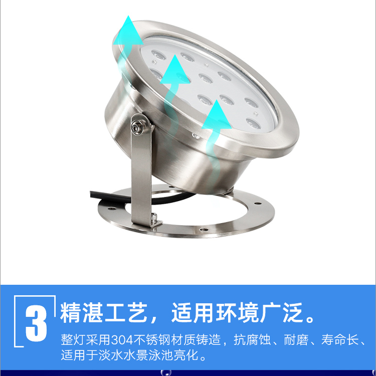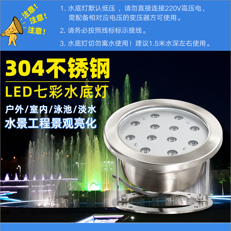 led水底灯 rgb七彩变色不锈钢 喷泉灯 水景亮化水下射灯