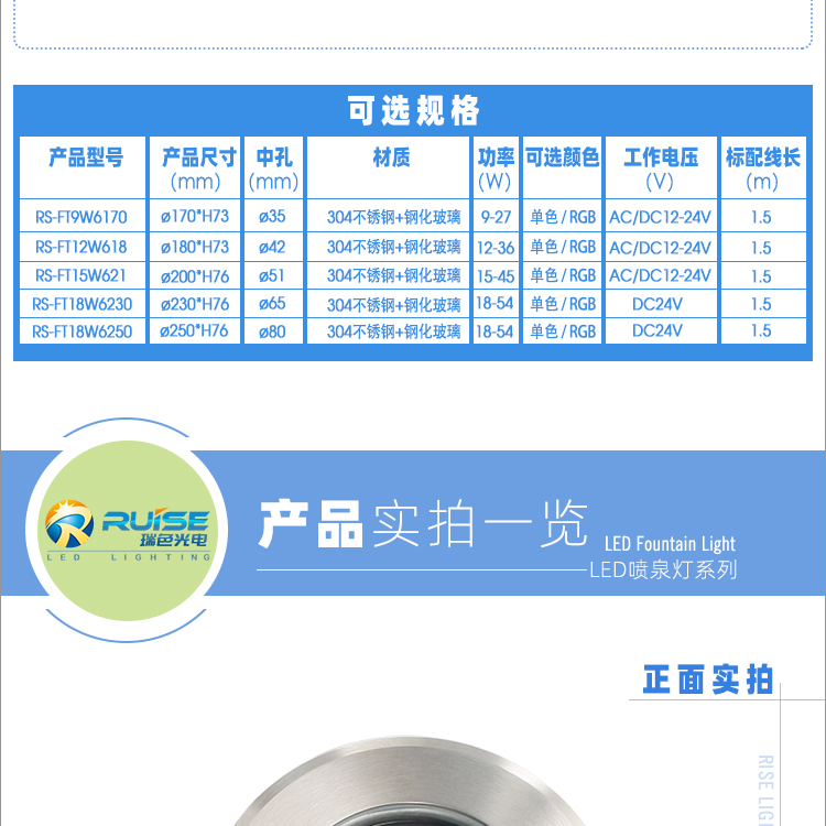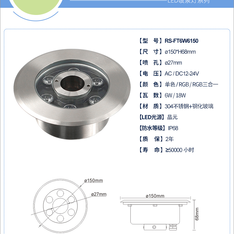 led喷泉灯 七彩涌泉灯 rgb不锈钢 水下照明 水下灯