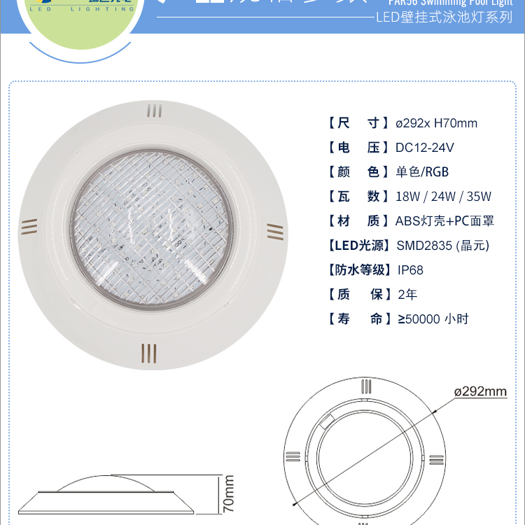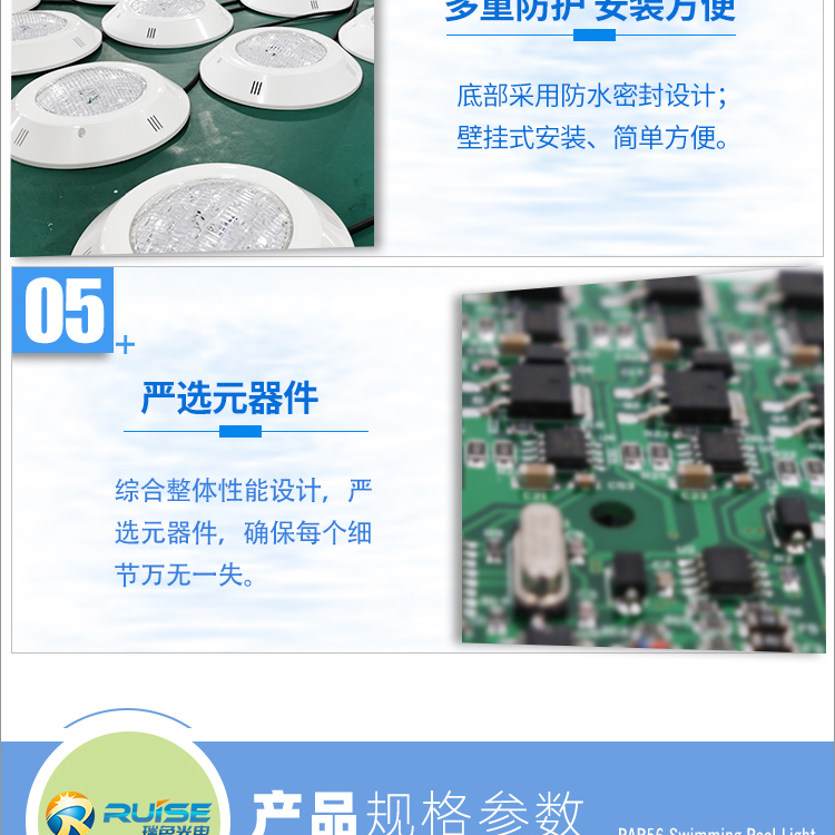 par56泳池灯 rgb七彩壁挂式水池灯 泳池壁灯 水景亮化
