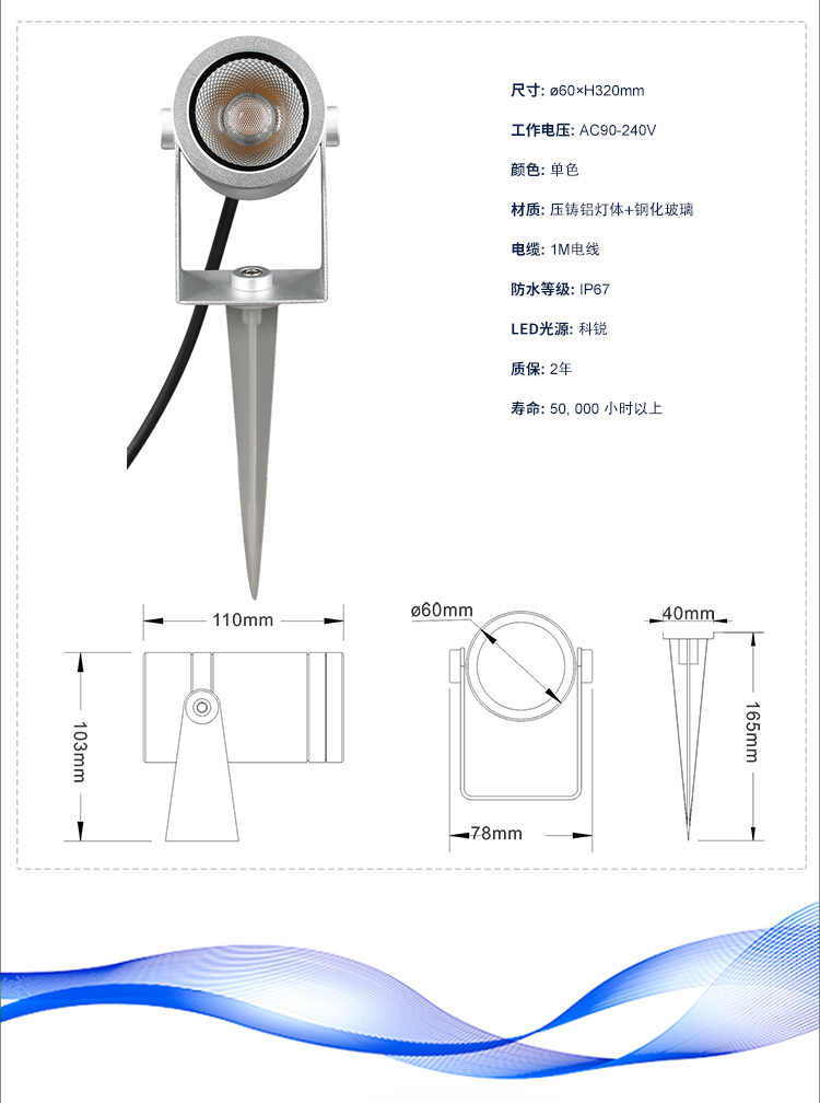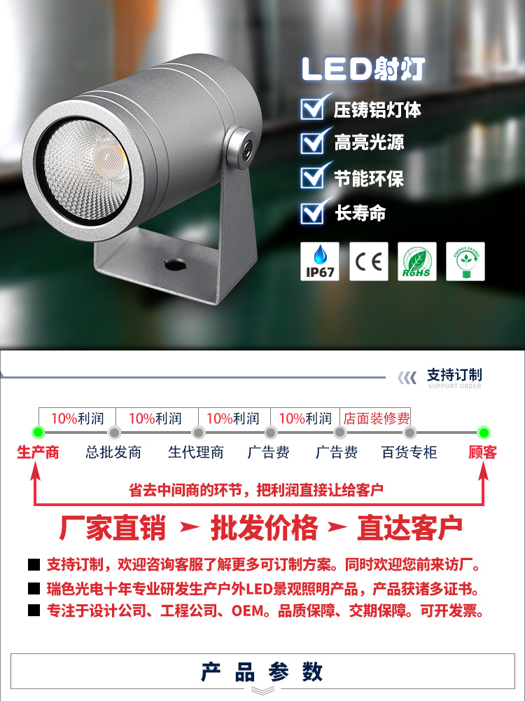 COB投光灯 航空铝单色rgb七彩 地插灯 射灯led