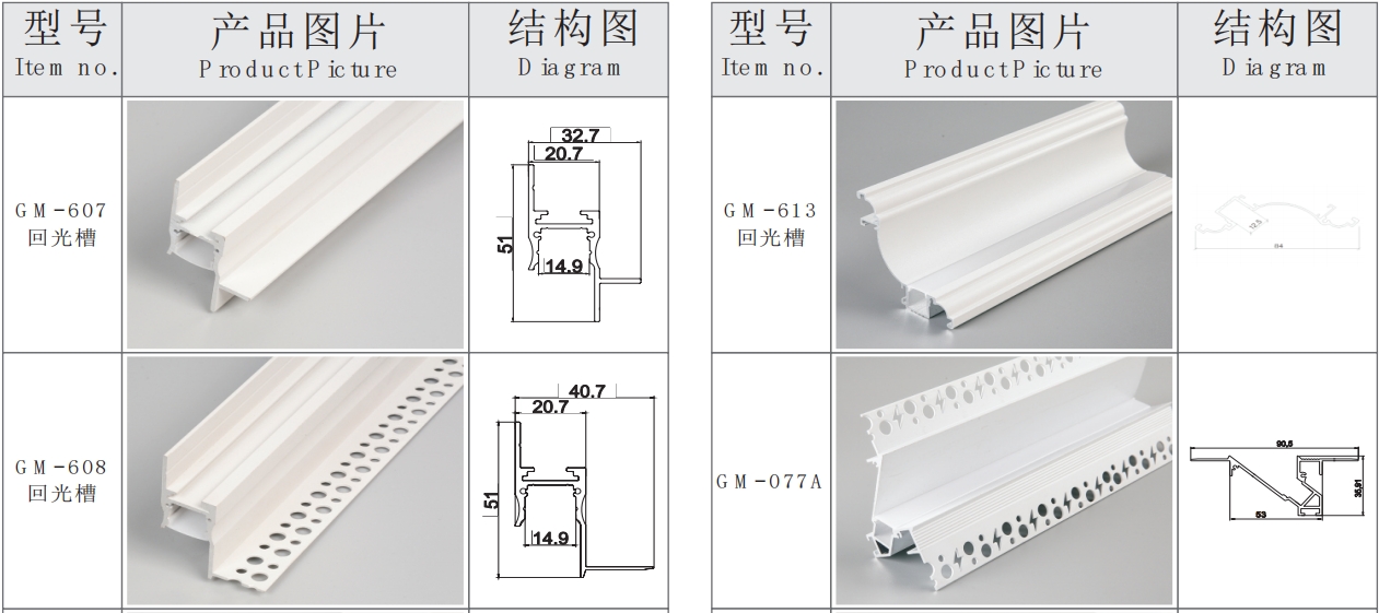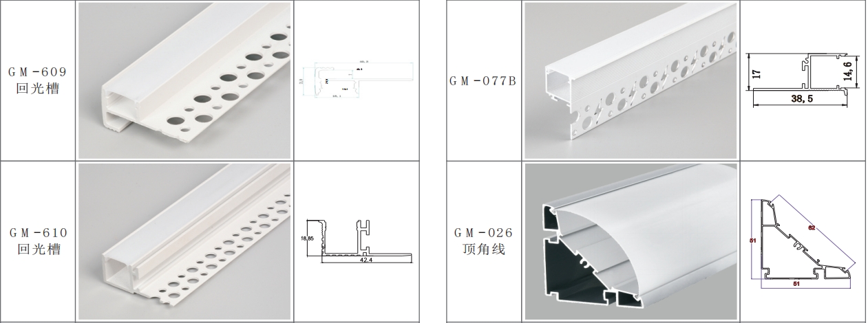 本公司创建于2011年,主要生产销售LED铝材,线条灯铝材,办公灯铝材