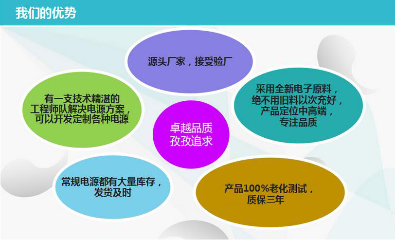 深圳市文婕鑫电子有限公司是专业从事开关电源的研发、生产和销售的高新技术企业,选取最优质的原材料,实行最严格的生产制作安装流程,不断研发推出新产品,产品通过SGS-ISO9001认证。以满足广大客户的需求。 公司自成立以来,我们秉承“以客户为中心”的公司理念,诚信、优质、满意的服务、最强的技术支援、最优惠价格是我的宗旨和依靠自己的精湛技术致力于开关电源的研究、开发和生产。我公司集开关电源科研、生产、销售于一体,公司下设开发部、生产部、质检部,各部以严格把关层层负责的态度,使公司的产品在激烈的市场竞争中占有一席之地,公司积极贯彻、执行产销一体化方针,抓住市场机遇,在激烈的市场竞争中求得快速发展,不断扩大生产规模和自主创新能力。