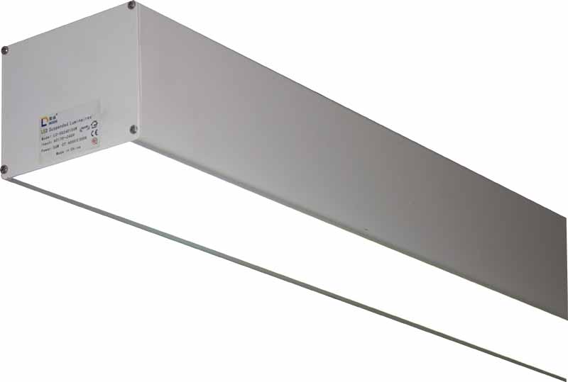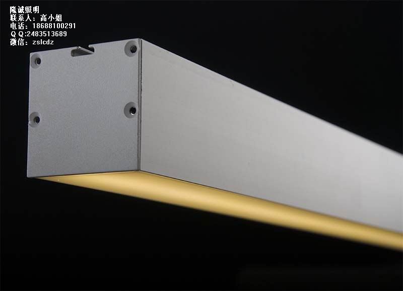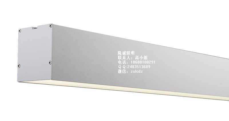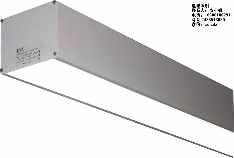产品名称:LED线条灯长方形吊灯 长条铝材商业照明长条灯 led吊线灯办公吊灯 产品名称:隆诚 LC-TDY50A 悬挂式LED灯具,结合了隆诚创新性的直接+间接的照明理念。条形铝材灯体,全铝端盖与高温烤漆的外表,高透光率扩散型PMMA散光罩是根据LED光波长开发的,出光均匀无阴影、防眩光效果好,控光面罩与灯体完美结合使整个灯具更加美观。充足的散热面积和热管理技术完美结合,保证了灯具光输出的持续性及色温的一致性。此款灯具可作为系统灯具可以实现无间断,无阴影的连续光带照明。安装方式有吊装、吸顶安装、嵌入式安装,嵌入式可实现无边嵌入。 应用场所:写字楼、学校、医院、高档超市、商场、酒店等公共建筑。 产品特点: ?灯体材料采用优质铝合金,表面静电喷涂处理,坚固耐用不易变色和刮花; ?高透光率扩散型PMMA控光罩,透光率高、出光均匀、防眩光效果好; ?选用进口高亮度SMD光源,光效高达120lm/W,显色指数≥80,色温有3000K/ 4000K/6000K可选; ?输入电压220-240V 50Hz;产品配有高转换率的驱动电源,确保整灯性能稳定;另可选配调光1-10V、DALI调光、调色温驱动电源; ?可选配智能控制组件,如微波感应控制、光控、声控、Wifi或Bluetooth无线控制、应急照明组件等; ?寿命长达5万小时,光衰小,减少后期维护费用; ?产品可通过CCC、CE、CB、RoHS等认证;