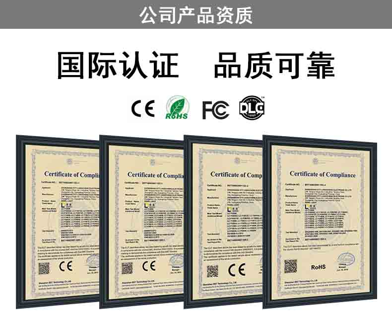 产品可通过CCC、CE、CB、RoHS等认证;
