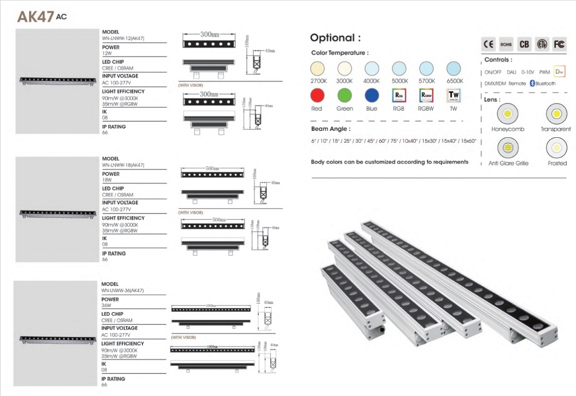 • 色温(k) 2801-3200K、3201-3800K、3801-4200K、4201-5000K、5001-6500K