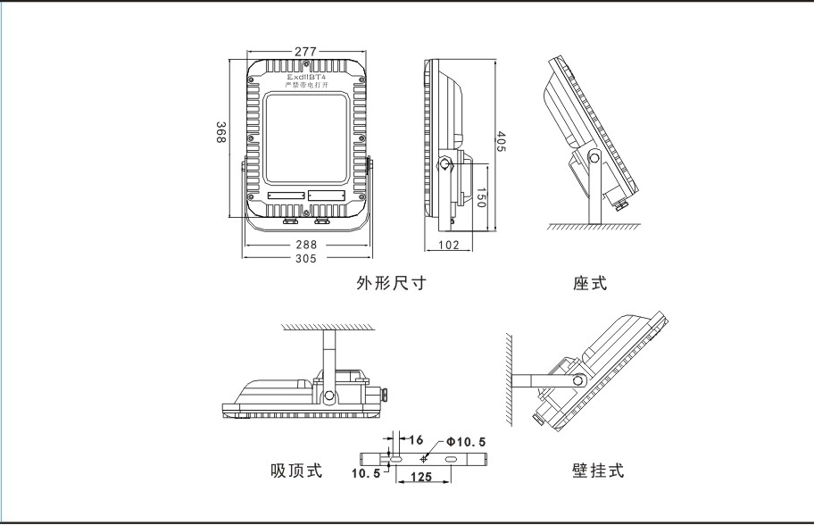 LED防爆泛光灯;适用于I区、II区危险场所.IIA、IIB类爆炸性气体环境.油田、石化、钻井、化工企业等易燃易爆的危险气体场所.各种室外作业、施工现场及装置、设施等场所。