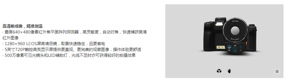 这是测温界的一款极致之作,为时代而生。如同智能手机一般,给予您更出众的视觉效果和更舒适便捷的操作体验,是我们创作这款产品的初衷。它继承了高德红外一贯的卓越性能和专业品质,将人体工程学设计与智能化技术完美融合,大大提升工作效率,帮助您轻松解决工作中的难题。C系列,红外热成像专业检测的最佳选择!