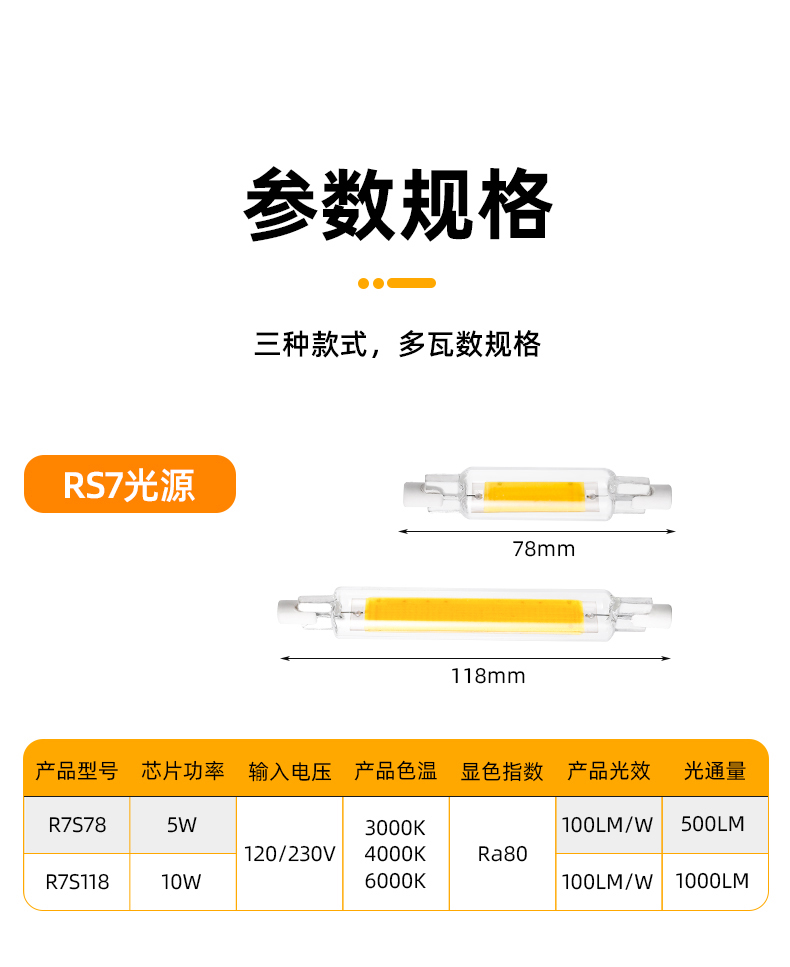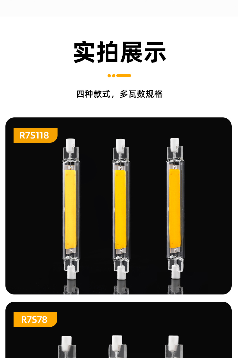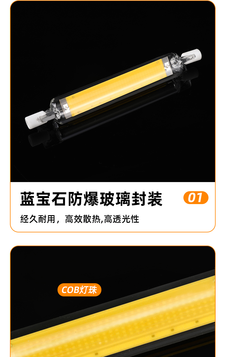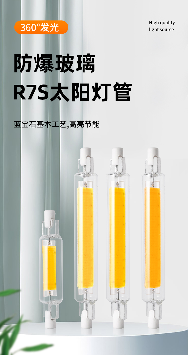 5W高压玻璃R7S78光源 交流120V/230点亮