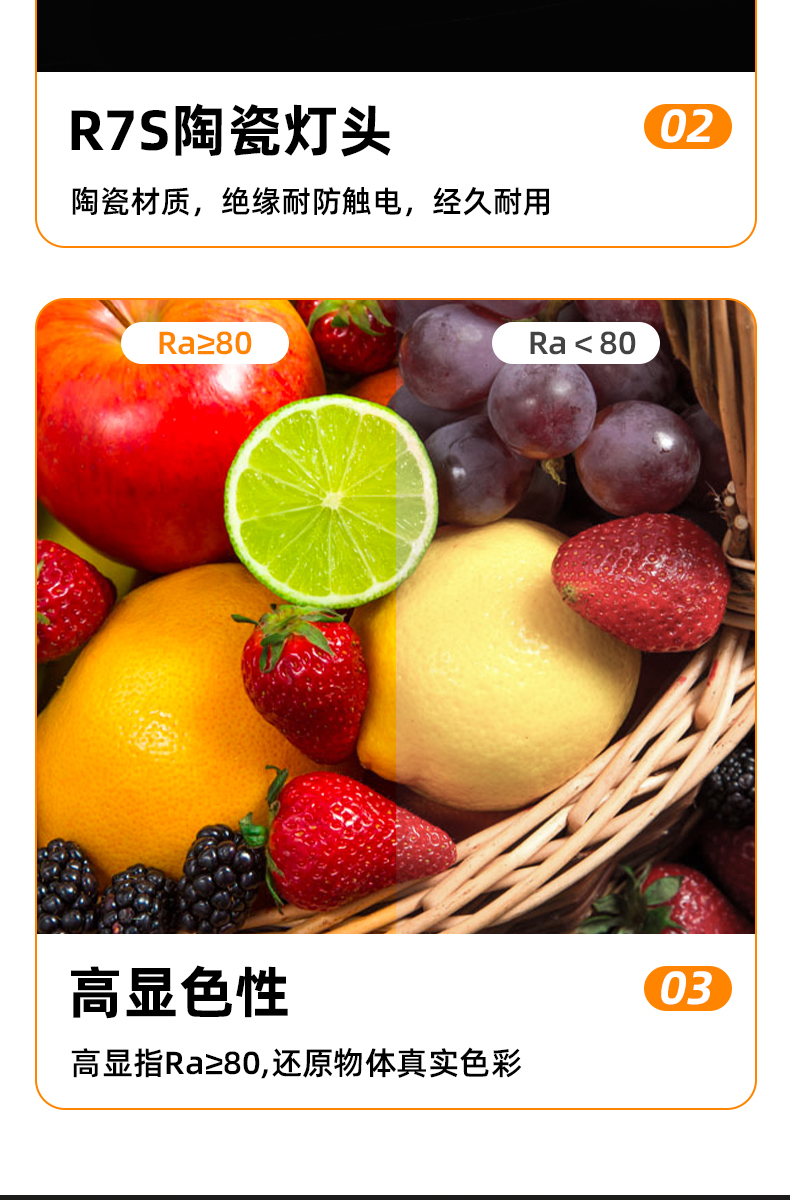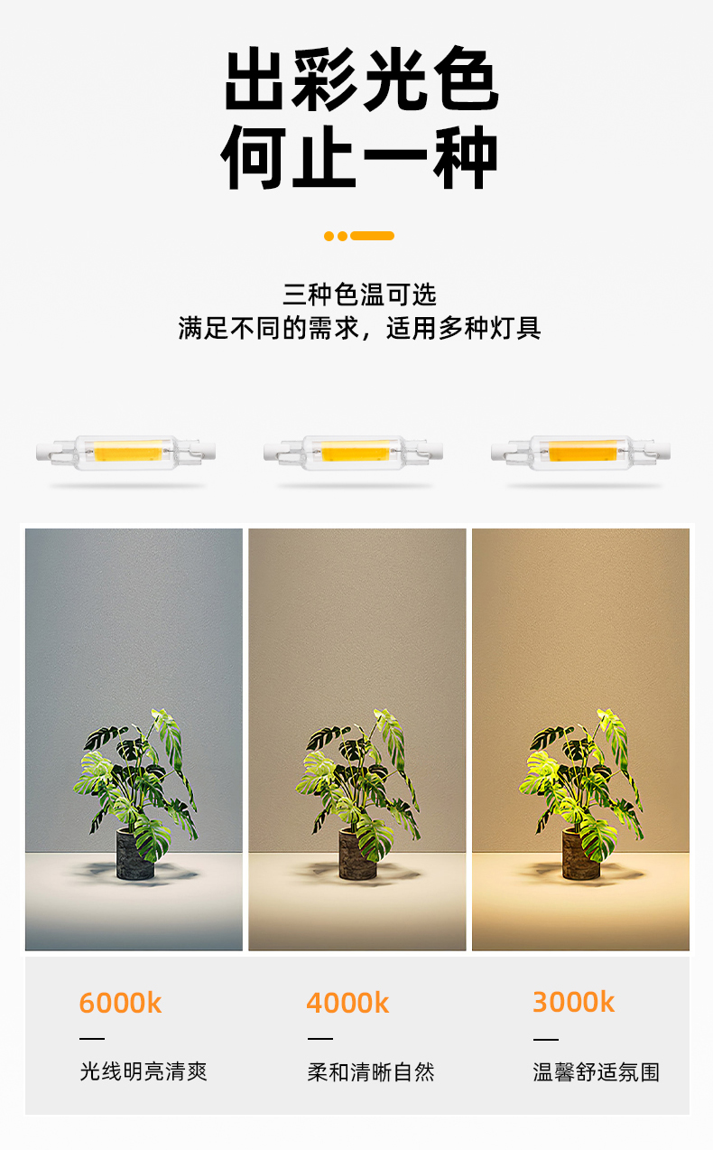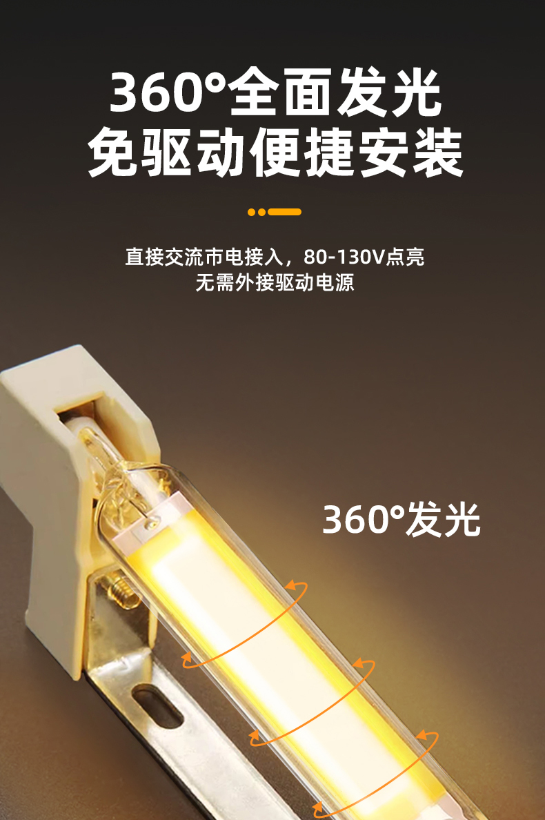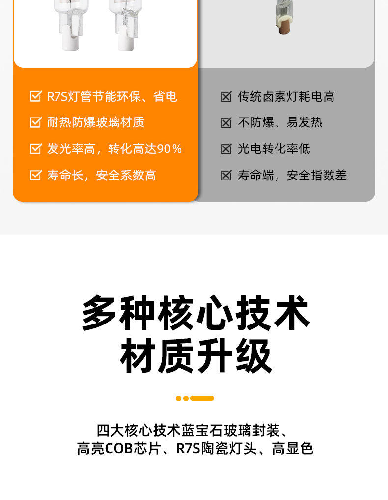 5W高压玻璃R7S78光源 交流120V/230点亮
