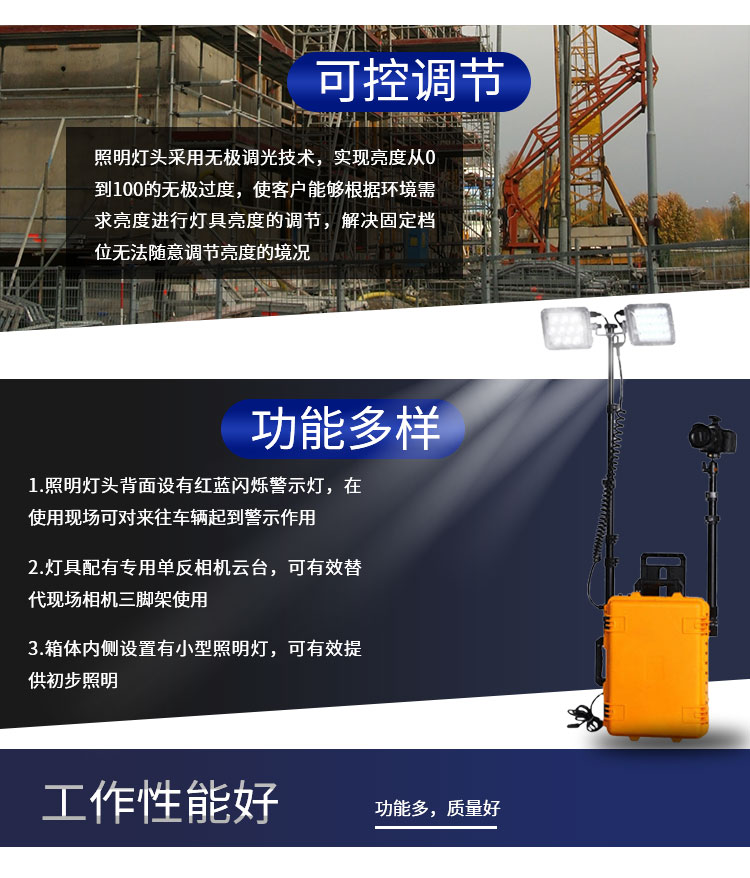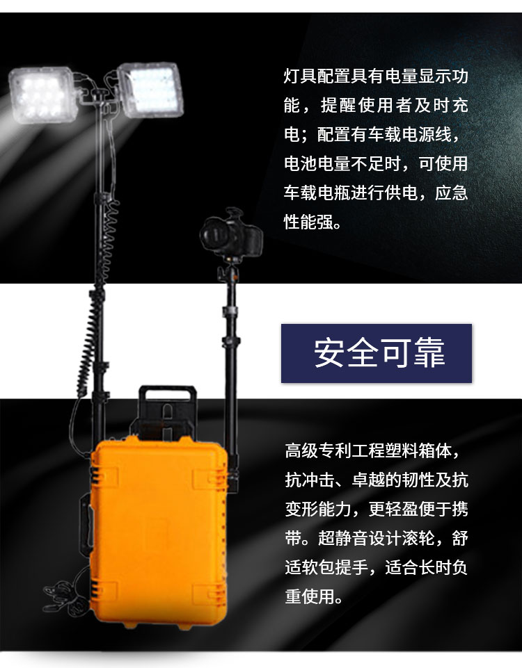移动升降射灯探照灯带电瓶氙气大灯LED双灯控制30W升降3米可充电