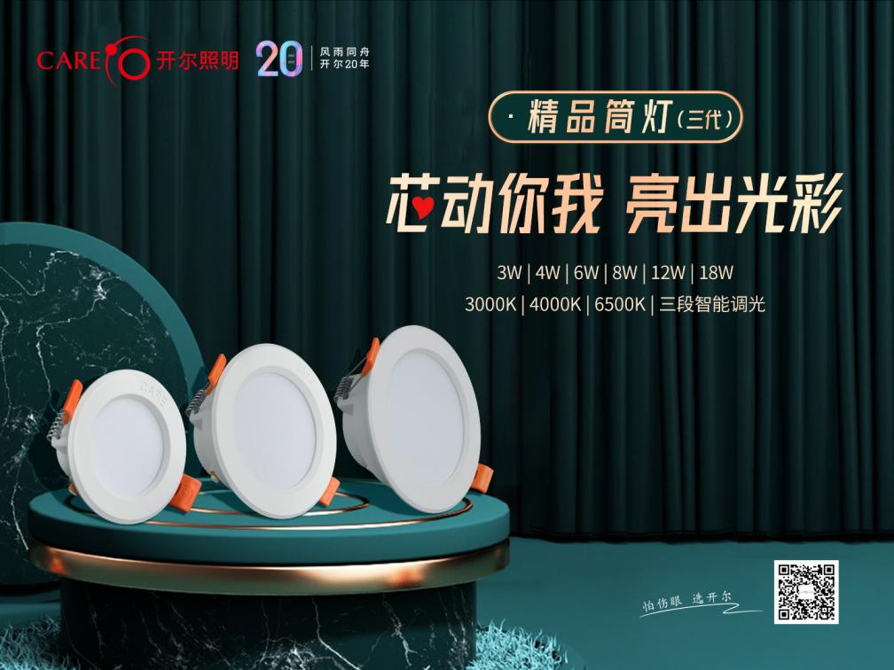 开尔照明精品筒灯(三代)拥有三段智能调光:正白光明朗通透/暖白光自然舒适/暖黄光温馨宜人,三种灯色随心把控,满足多种用光需求,如聚会、看报、休息等,使场景色彩更出众。