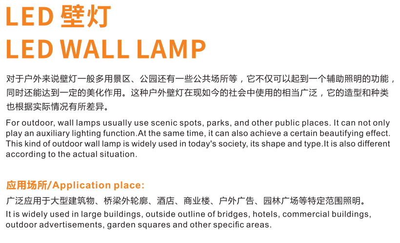 • 适用空间 绿化景观、外墙、商业街、园林、住宅、广场