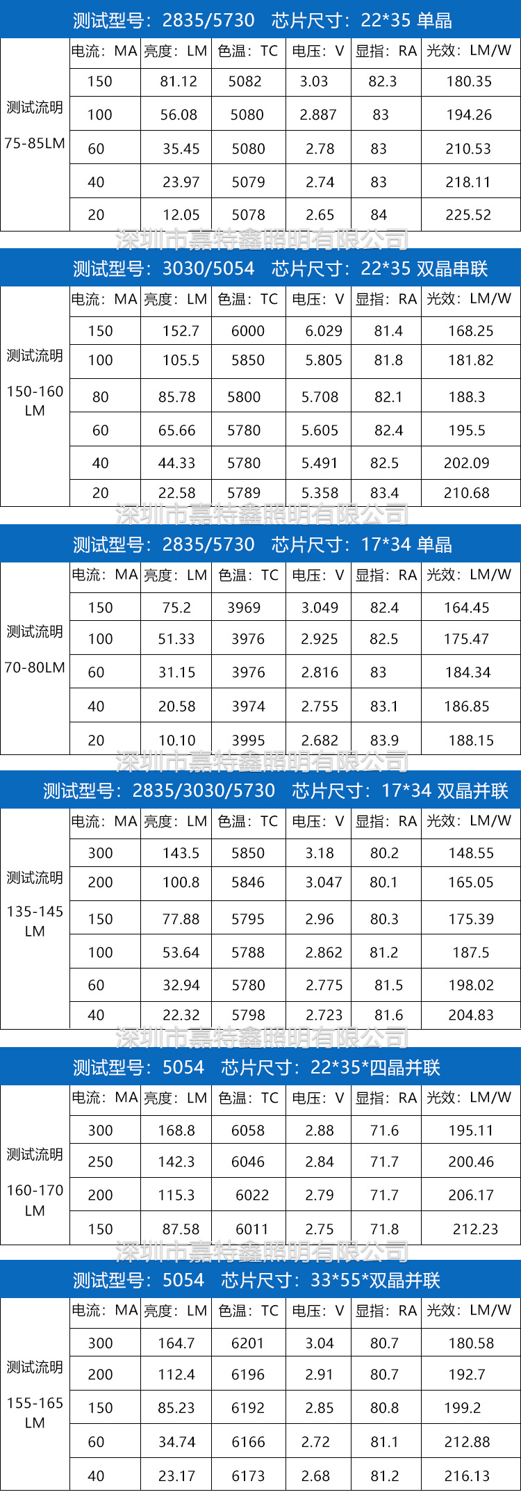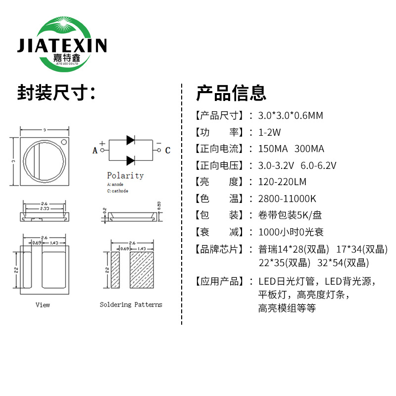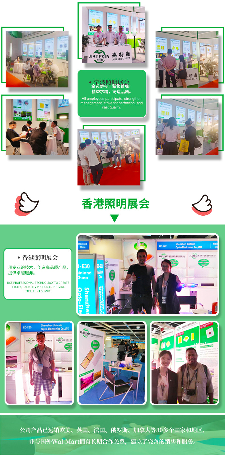 深圳市嘉特鑫照明有限公司是一家专业从事5730、3030、 2835 、3528、5050超高亮度SMD LED,大功率LED产品的封装高新技术企业。现今公司的产品广泛应用于球泡灯、天花灯、吸顶灯、面板灯、灯管、LED射灯、工矿灯、路灯、舞台灯、信号灯、汽车灯等照明领域。公司产品已远销欧美、英国、法国、俄罗斯、加拿大、中东、印度、新加坡、台湾等30多个国家和地区,并建立了完善的销售和服务网络。