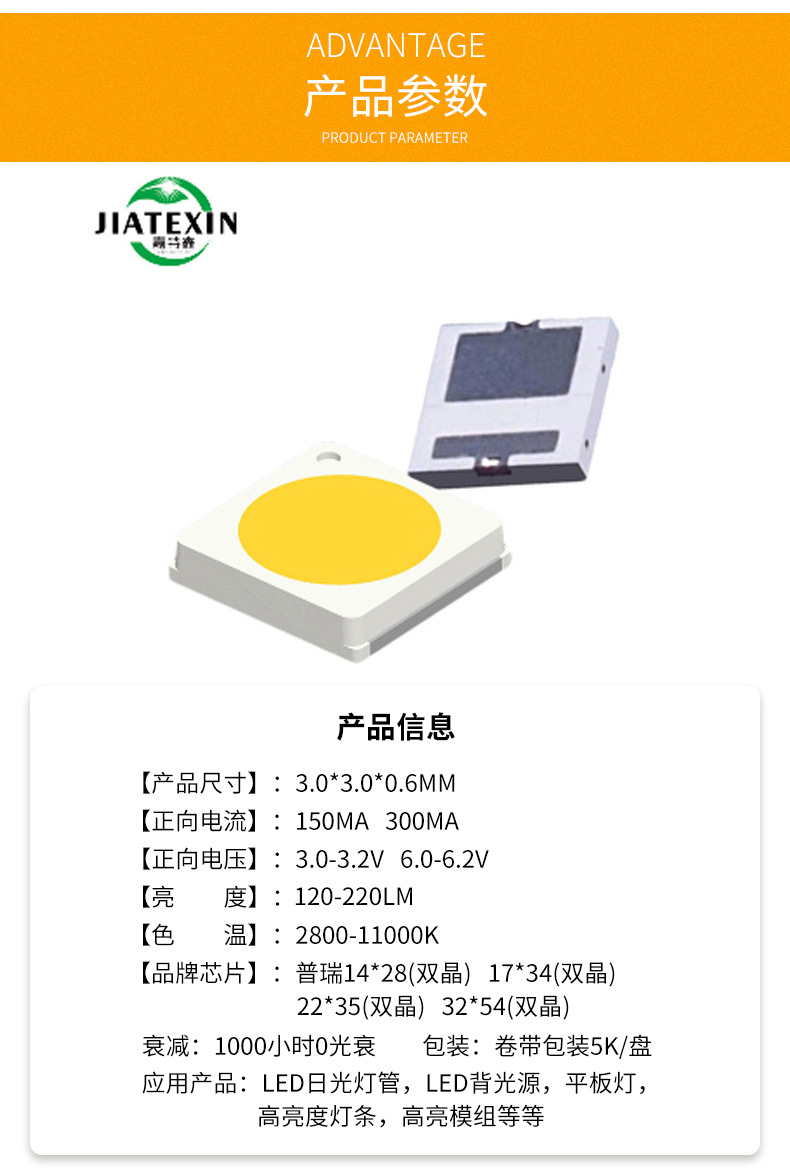 3030LED贴片灯珠1W普瑞EMC支架120-220LM高