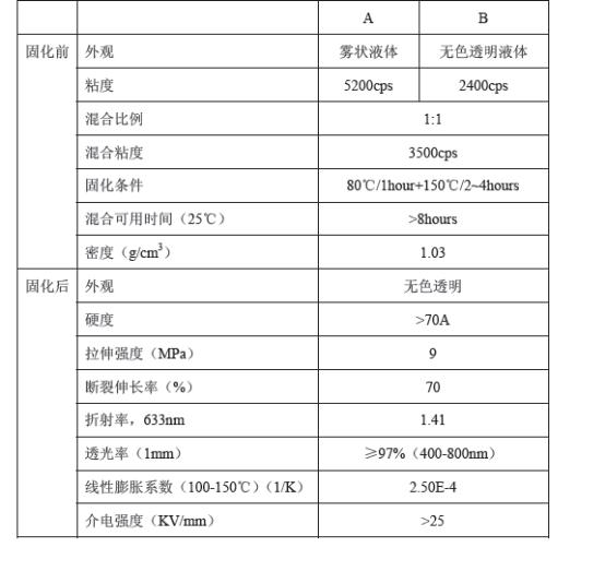 1、透明度佳,对PPA、PCB 线路板、电子元件、ABS、金属等有很好的附着力,胶固化后呈无色透明状,低线性收缩率及吸潮率,耐黄变老化佳。