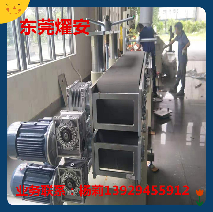 PC灯管灯罩型材挤出生产线主要由挤出主机、挤出模具、三维电动水槽、皮带牵引、切割、堆放架等部分组成。挤出主机采用高效挤出螺杆,变频调速,根据不同的产品规格配置不同的挤出主机;三维定型水槽采用不锈钢接水盘,配国产名牌真空泵;牵引机采用国产名牌电机,变频控制,可选择手动或电动升降;切割机高速锯片切割