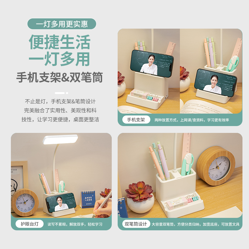 led多功能手机支架笔筒学习儿童学生宿舍护眼阅读学习灯