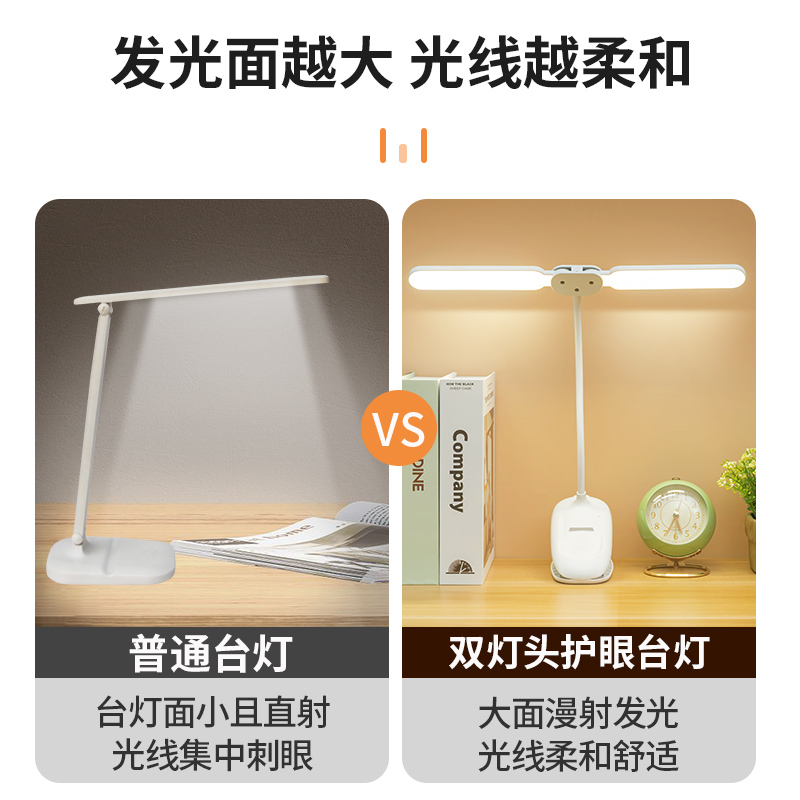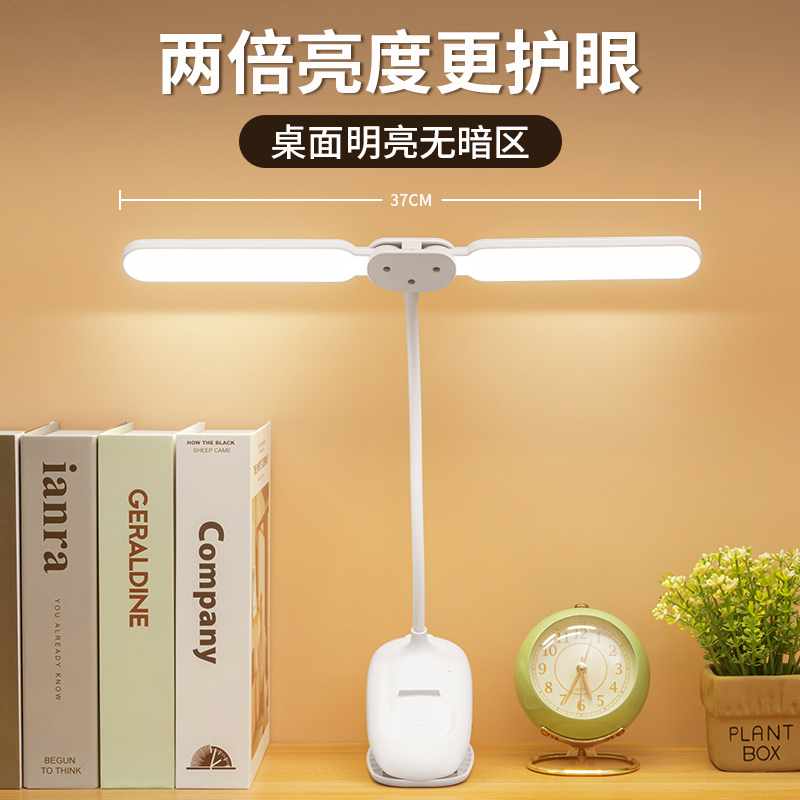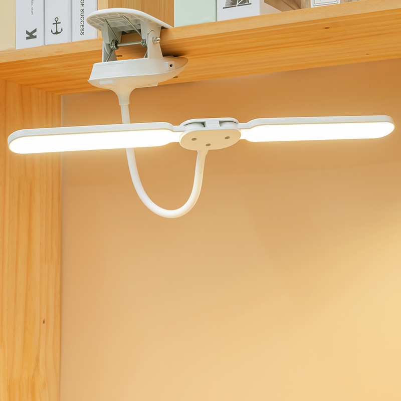 夹子软管折叠LED学习宿舍双灯头卧室学生宿舍护眼阅读充电台灯