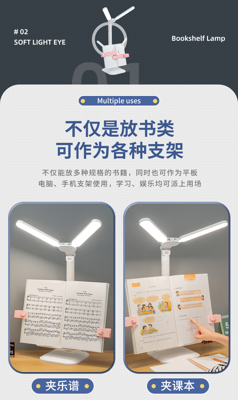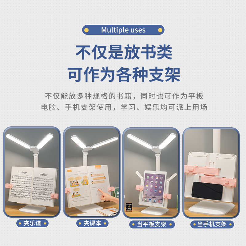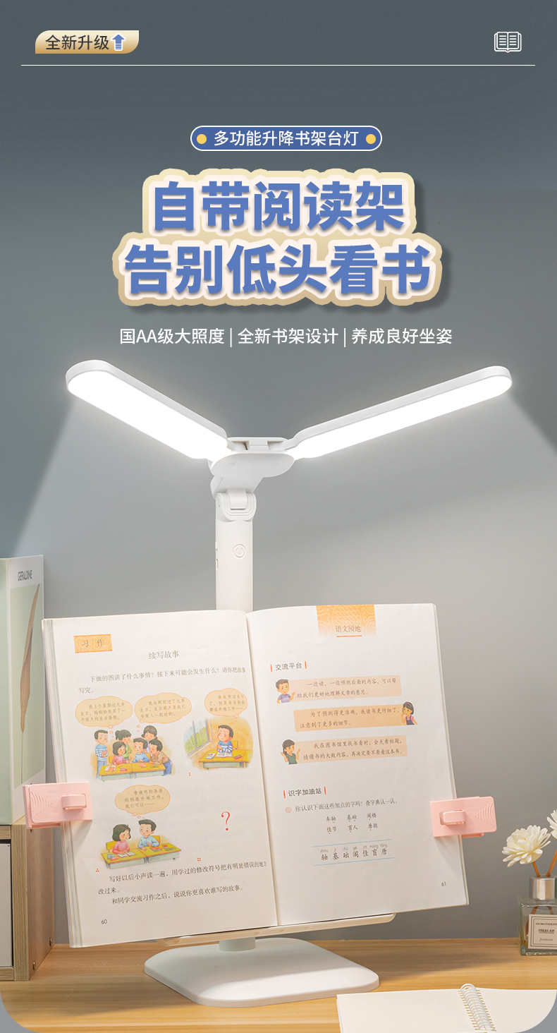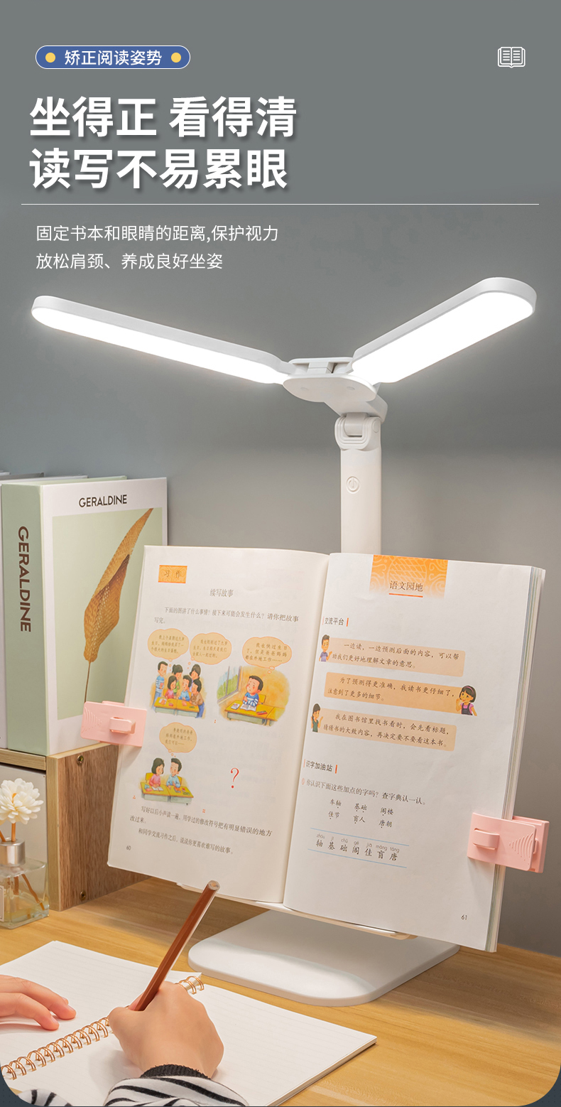 多功能双灯头赠书架学习儿童学生宿舍护眼阅读学习灯