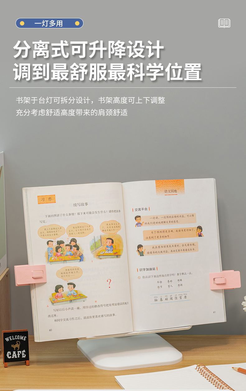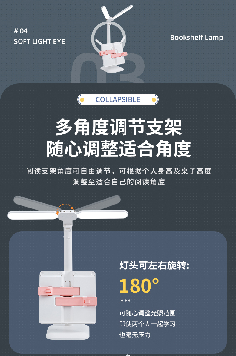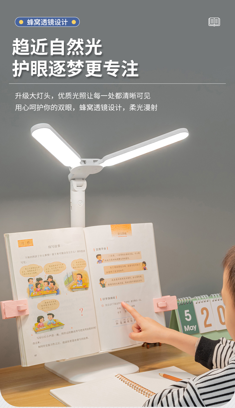 多功能双灯头赠书架学习儿童学生宿舍护眼阅读学习灯