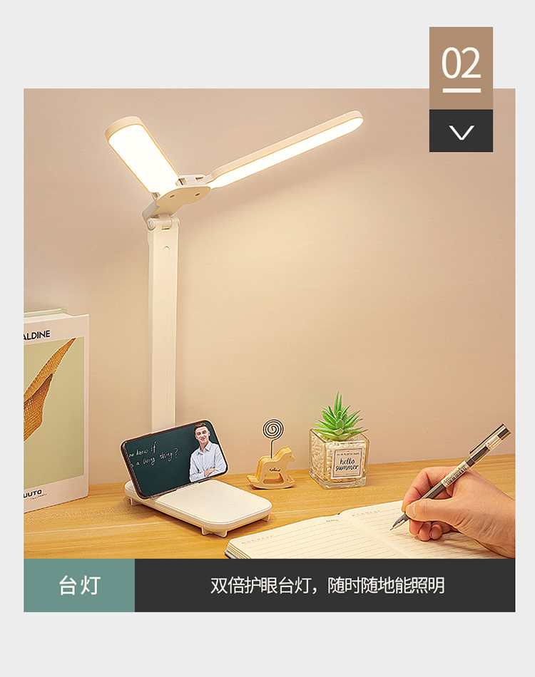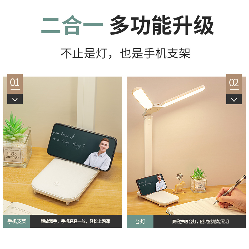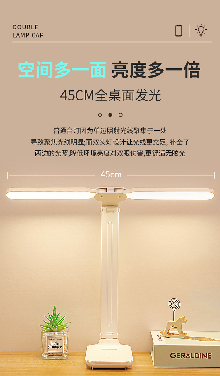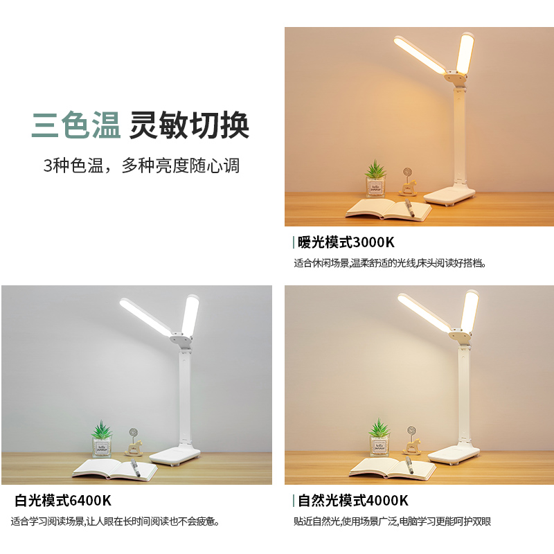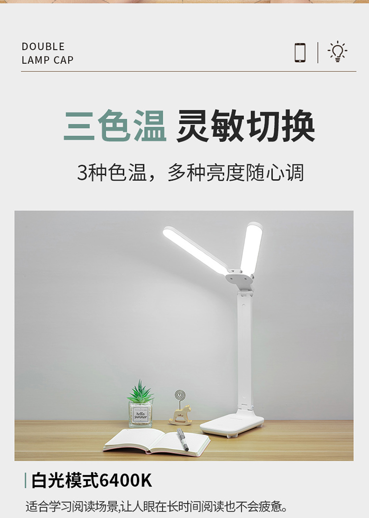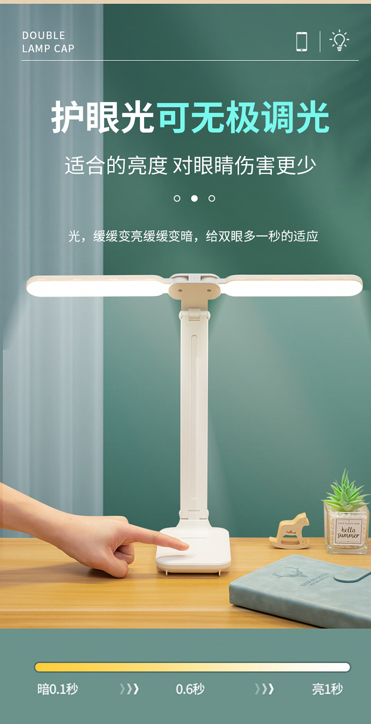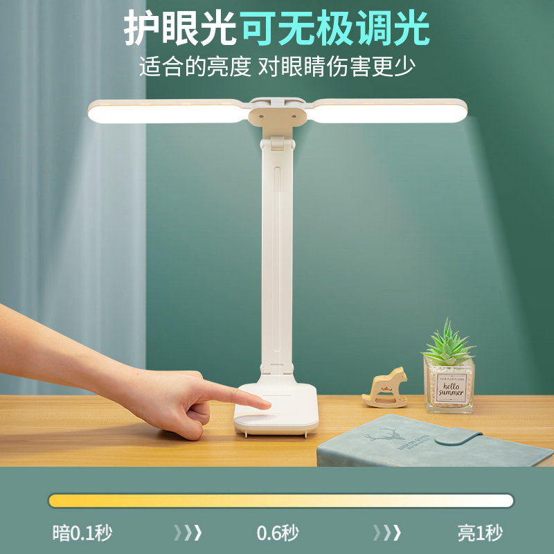 折叠台灯双灯头LED学习儿童学生宿舍护眼阅读充电USB台灯