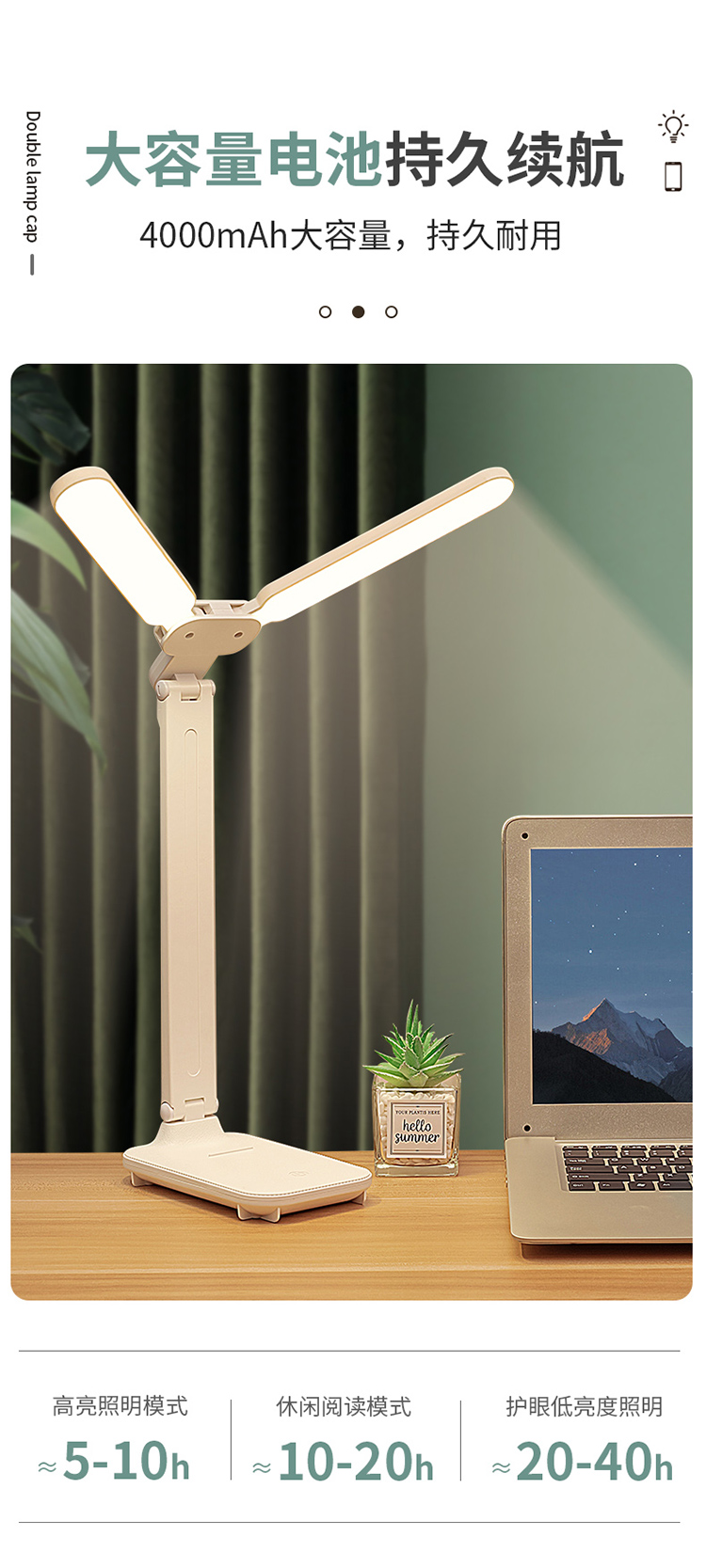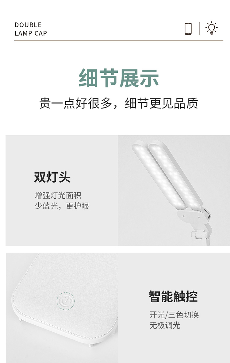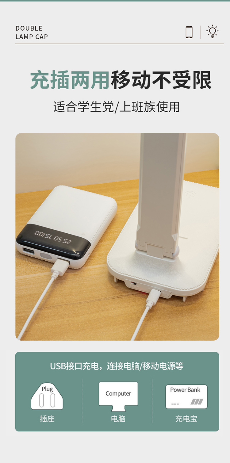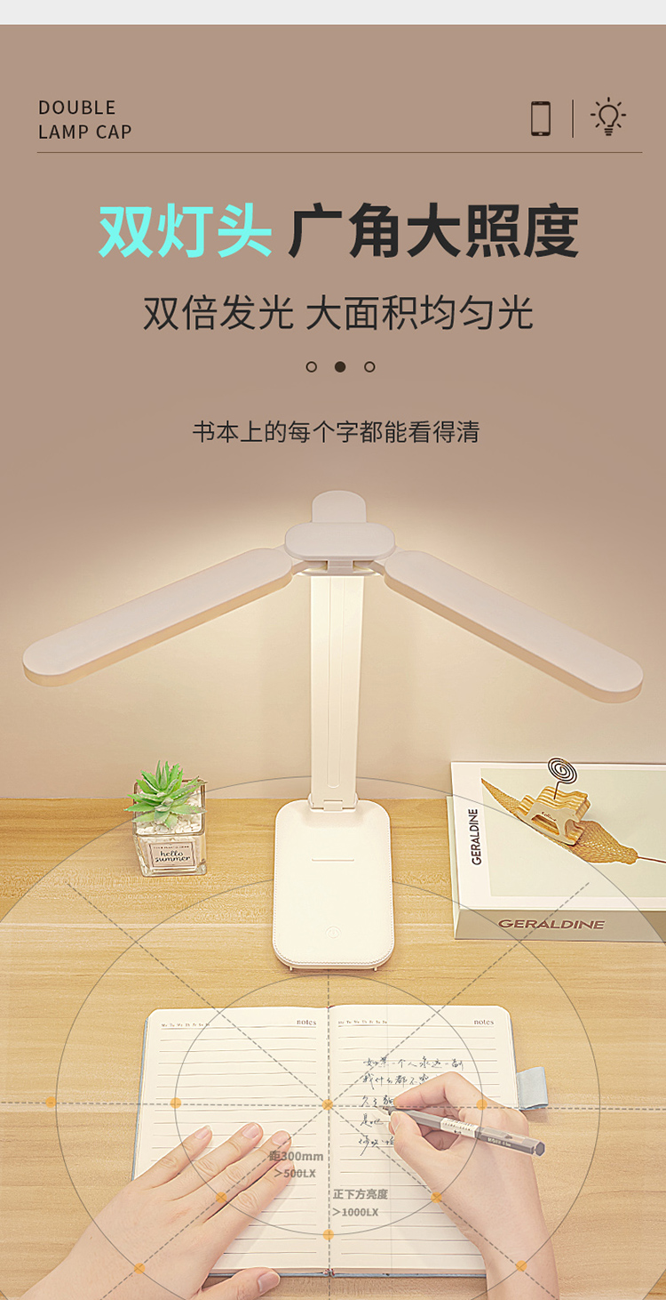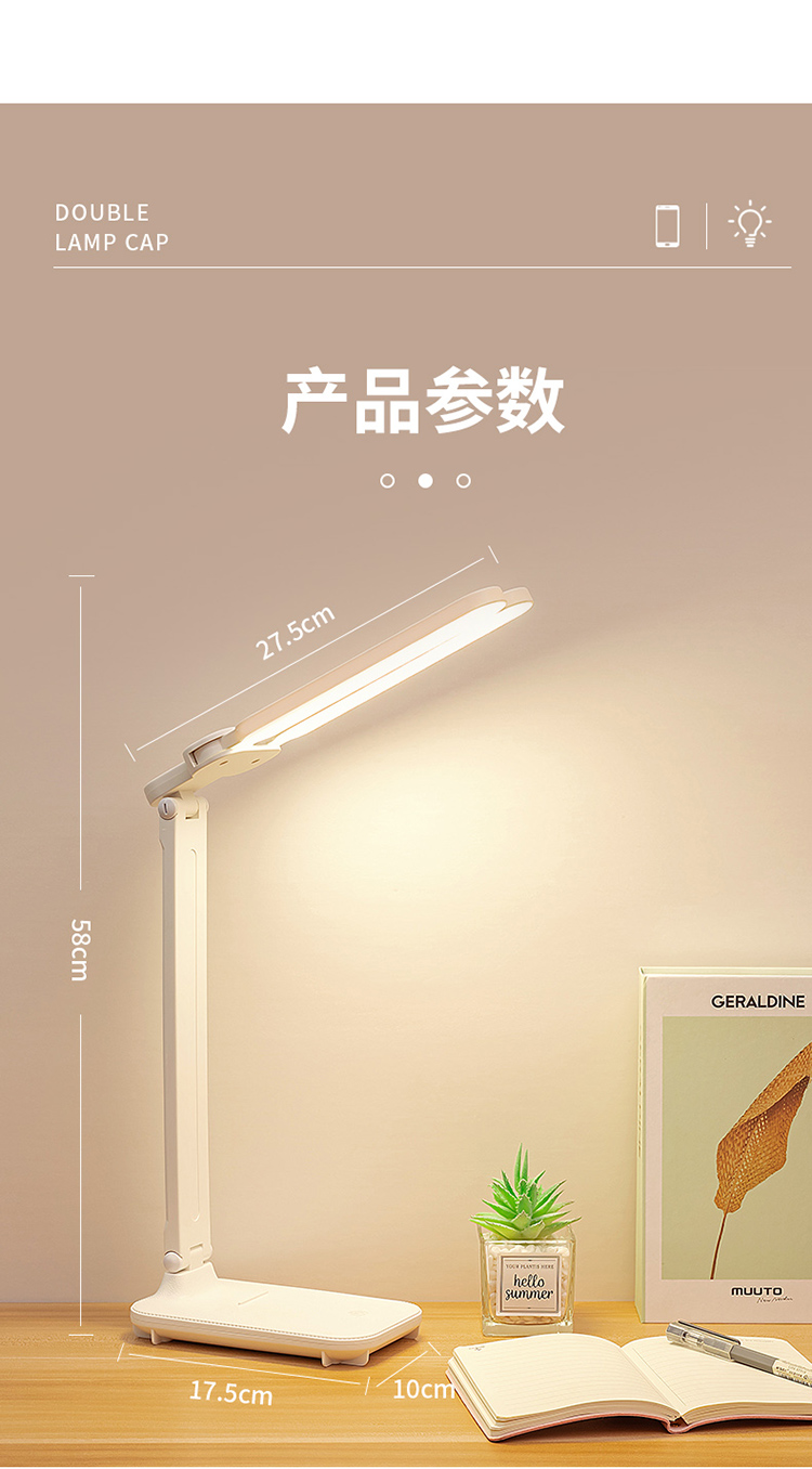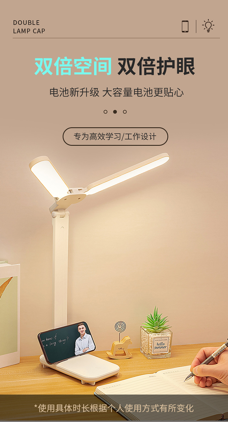 折叠台灯双灯头LED学习儿童学生宿舍护眼阅读充电USB台灯