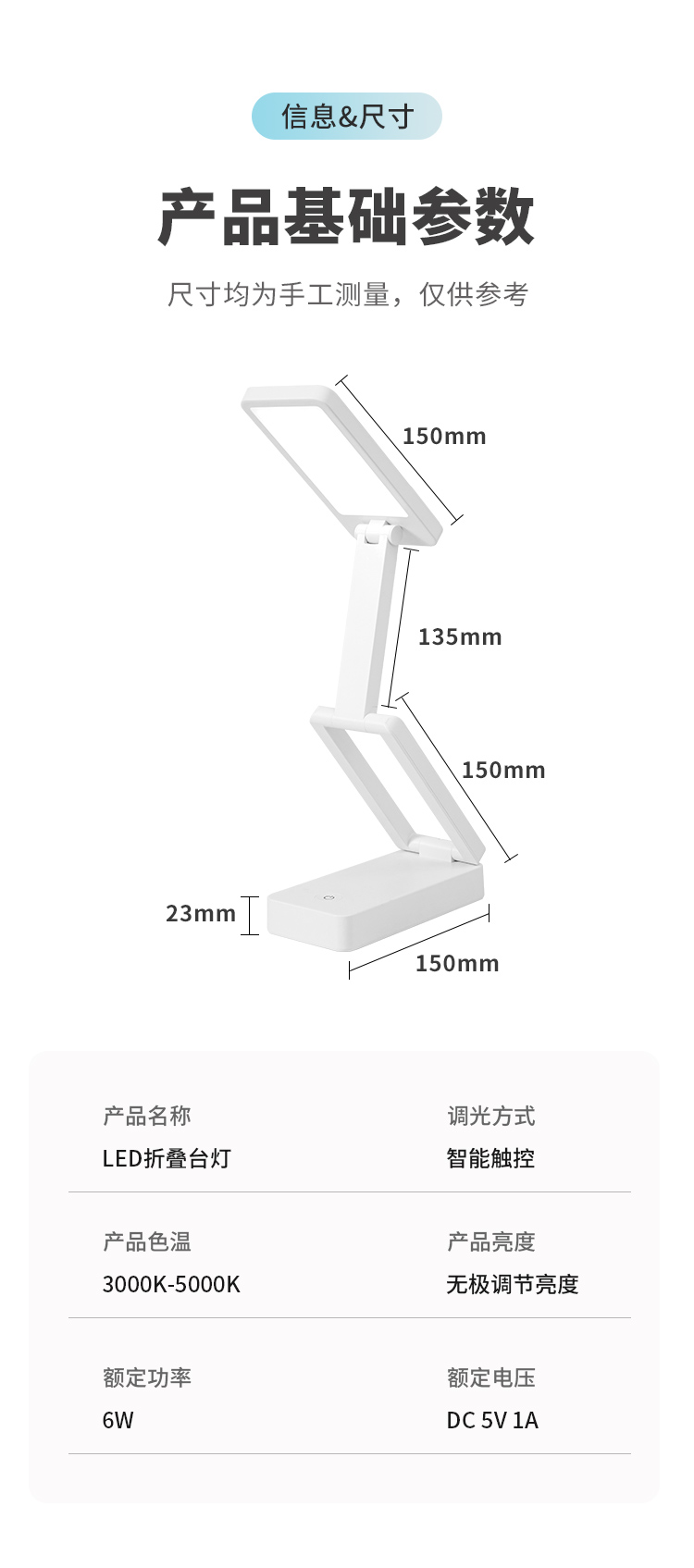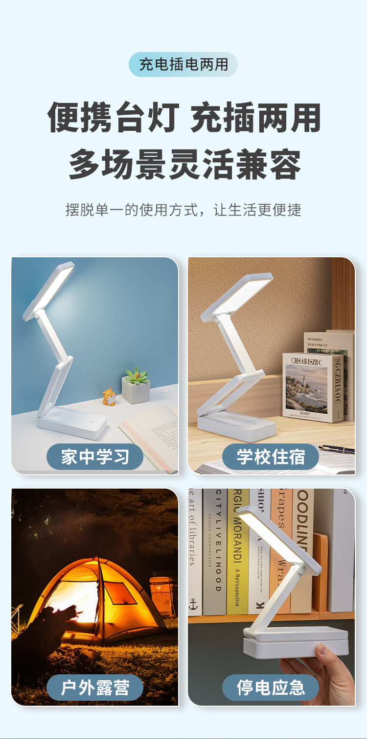 可充电池式学生学习专用护眼宿舍折叠款便携大容量超长续航折叠灯
