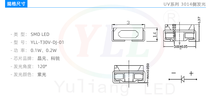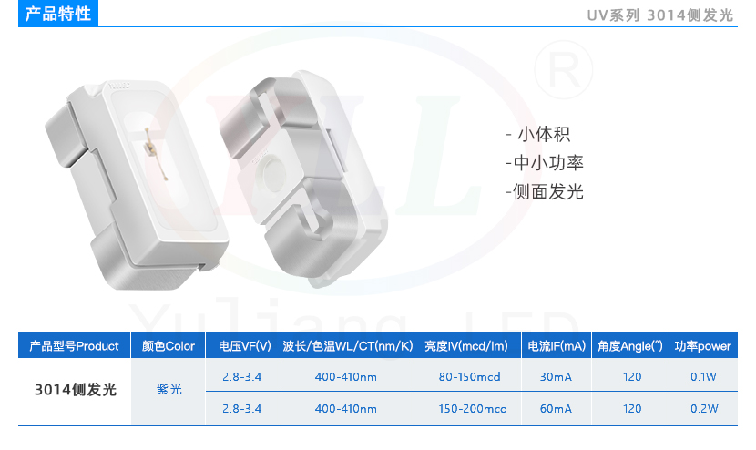 3014 UV系列紫光侧发光LED贴片灯珠参数