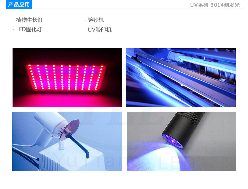适用范围:UV胶印机、验钞机/手持验钞机、LED固化灯、植物生长灯