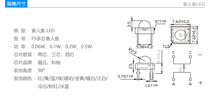 5mm多芯食人鱼LED灯珠参数