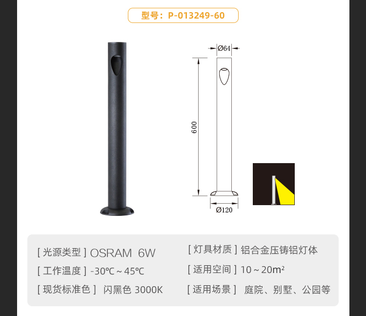 云达花园别墅照明是江门市云达灯饰有限公司旗下品牌之一,公司创立于2000年,专注于公园、广场、别墅户外照明产品的研发、制造和销售。江门市云达灯饰有限公司占地30亩,建筑面积20000平方米,设有产品开发设计部、国际销售部、国内营销部、数控五金车间、焊接抛光车间、粉末涂装车间、电子车间、总装车间等部门。云达配备了内部实验室,具备积分球光电参数测试、分布式光度计(IES)测试、电子EMC测试、紫外线老化测试、IP测试、IK测试、高低温冲击测试、盐雾测试等。企业拥有120多项外观、实用新型和发明专利。2012年,云达获得了TUV授予的ISO9001质量管理体系认证,在生产过程中,严格遵循ISO9001品质控制程序和标准,确保产品品质。 云达所有产品自主设计、自主模具;产品包括防水壁灯、墙脚灯、庭院灯、草坪灯、街道灯、埋地灯、插地灯、水底灯、投光灯等,先后获得CE、CB、CCC、SAA、BIS等认证。产品销售往全国各地及欧洲、澳洲、中东、东南亚、南美洲、非洲等国家和地区为主。云达实行的区域保护销售机制,使得产品在国外市场始终保持良好的竞争力,并在22个国家中建立了“云达户外照明”独立品牌的销售渠道。江门市云达灯饰有限公司二十多年来专注细分市场的学习和创新,积累了相当专业的经验;同时开发了两千多套压铸、注塑、型材模具,可生产的自主产品也达到了上千种。在提供产品的同时,云达还提供与产品一致的光电参数、IES文件,可以帮助设计师实现完全可控的照明设计。云达严格按照欧洲品质标准制造产品,以分享与合作的精神与客户强强联手,在花园别墅户外照明细分市场强化节能、环保理念,引领绿色照明的潮流。
