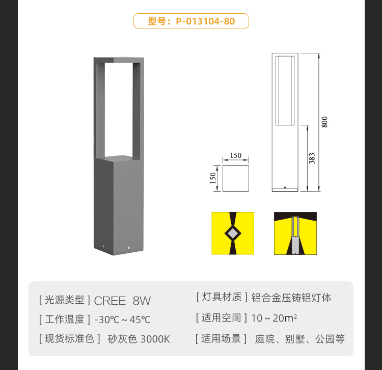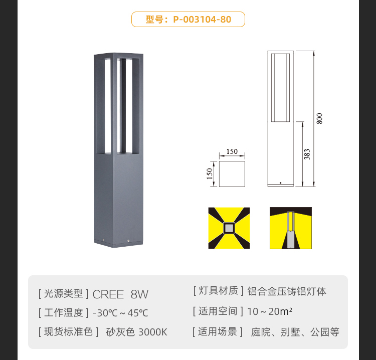 云达花园别墅照明是江门市云达灯饰有限公司旗下品牌之一,公司创立于2000年,专注于公园、广场、别墅户外照明产品的研发、制造和销售。江门市云达灯饰有限公司占地30亩,建筑面积20000平方米,设有产品开发设计部、国际销售部、国内营销部、数控五金车间、焊接抛光车间、粉末涂装车间、电子车间、总装车间等部门。云达配备了内部实验室,具备积分球光电参数测试、分布式光度计(IES)测试、电子EMC测试、紫外线老化测试、IP测试、IK测试、高低温冲击测试、盐雾测试等。企业拥有120多项外观、实用新型和发明专利。2012年,云达获得了TUV授予的ISO9001质量管理体系认证,在生产过程中,严格遵循ISO9001品质控制程序和标准,确保产品品质。 云达所有产品自主设计、自主模具;产品包括防水壁灯、墙脚灯、庭院灯、草坪灯、街道灯、埋地灯、插地灯、水底灯、投光灯等,先后获得CE、CB、CCC、SAA、BIS等认证。产品销售往全国各地及欧洲、澳洲、中东、东南亚、南美洲、非洲等国家和地区为主。云达实行的区域保护销售机制,使得产品在国外市场始终保持良好的竞争力,并在22个国家中建立了“云达户外照明”独立品牌的销售渠道。江门市云达灯饰有限公司二十多年来专注细分市场的学习和创新,积累了相当专业的经验;同时开发了两千多套压铸、注塑、型材模具,可生产的自主产品也达到了上千种。在提供产品的同时,云达还提供与产品一致的光电参数、IES文件,可以帮助设计师实现完全可控的照明设计。云达严格按照欧洲品质标准制造产品,以分享与合作的精神与客户强强联手,在花园别墅户外照明细分市场强化节能、环保理念,引领绿色照明的潮流。