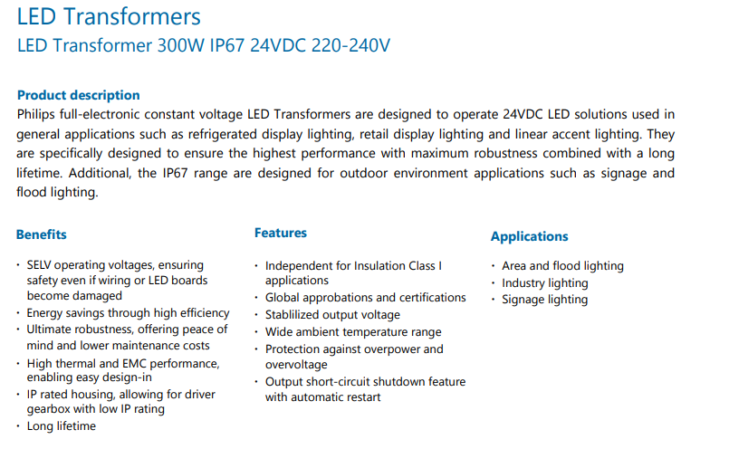飞利浦 PHILIPS LED Transformers IP67 亮化驱动