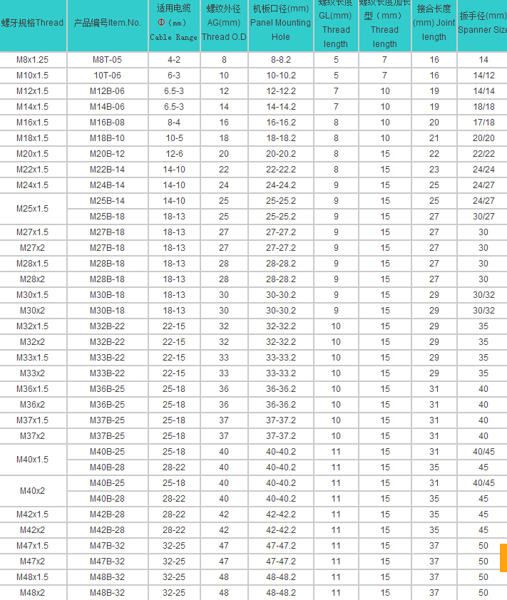 产品特性:特殊夹紧爪与夹紧圈凹凸相扣之设计,配合迫紧头装配省时便利,夹紧电缆范围大、抗拉力强、可防水、防尘、抗盐、耐酸碱、酒精、油脂及一般溶剂。