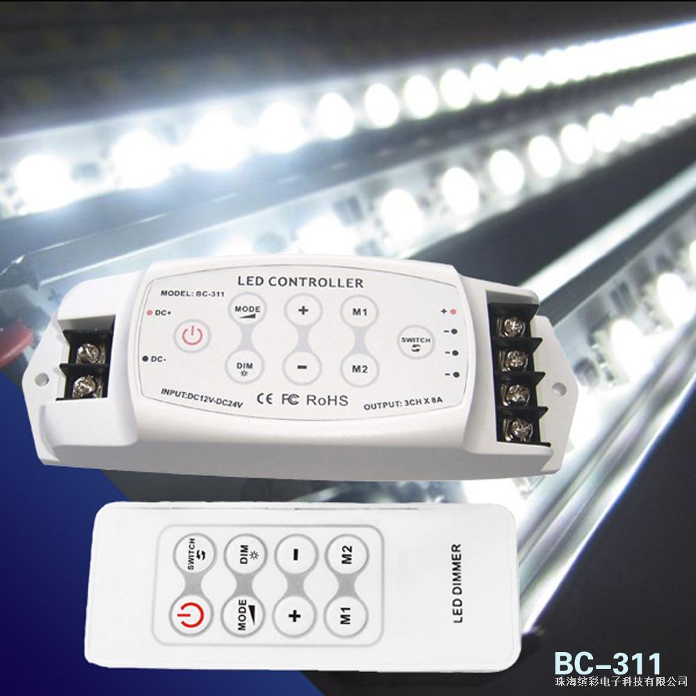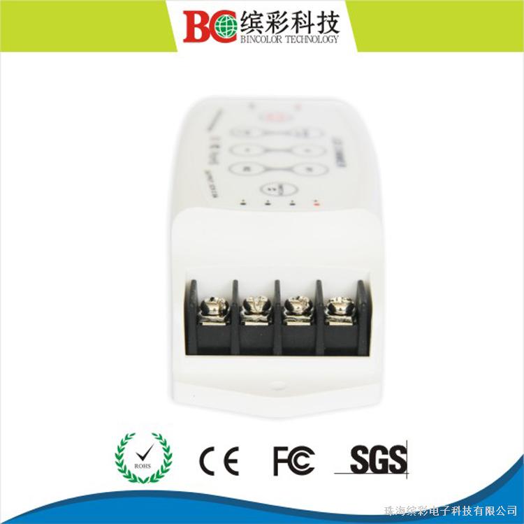 欢迎使用LED调光控制器,该控制器是一款通用型高性能的单色功率型控制器,采用PWM(脉宽调制)控制技术,可控制单色LED灯饰产品。配有RF遥控器,能接受遥控器的控制,不受方向和障碍物限制,在有效距离内都能对控制器进行控制。