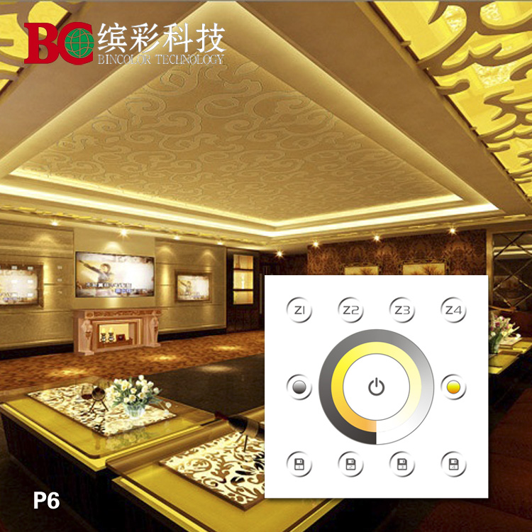 珠海缤彩P系列触摸面板控制器,该系列控制器包括多区系列和单区负载系列,是安装于商业/办公/家具墙壁的LED照明控制器,可实现调光、调色温、RGB、RGBW四种类型,其中分区系列P5、P6、P7、P8为DMX512控制面板,可以控制DMX512灯具,此系列触摸控制器可满足于各种类型的LED照明产品的控制需求。