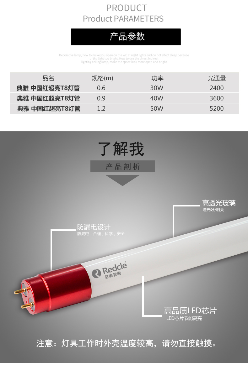 典雅中国红LED T8超亮灯管 30W 40W 50W