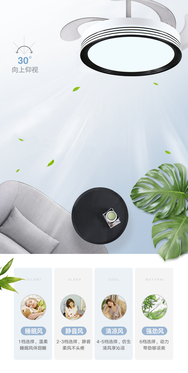现代简约客厅餐厅隐形风扇灯个性创意风扇吊灯 吊扇灯8935