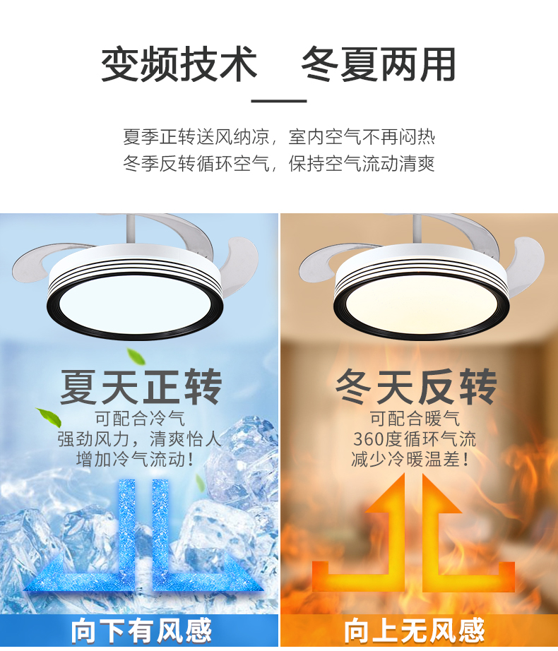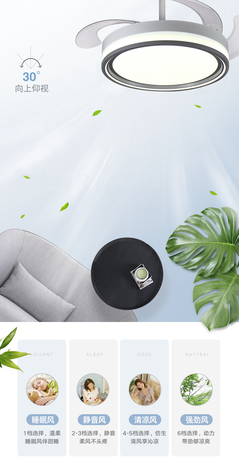 现代简约客厅餐厅隐形风扇灯个性创意风扇吊灯吊扇灯8946