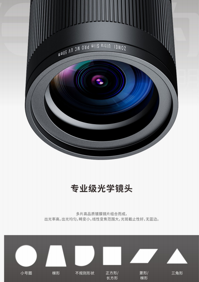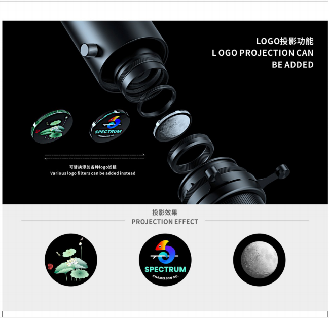 ●功能强大,切光,调焦,投影,滤镜,智能控制
