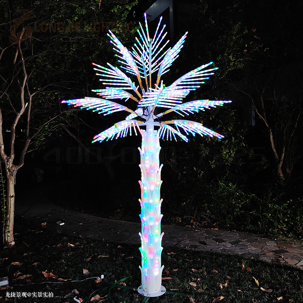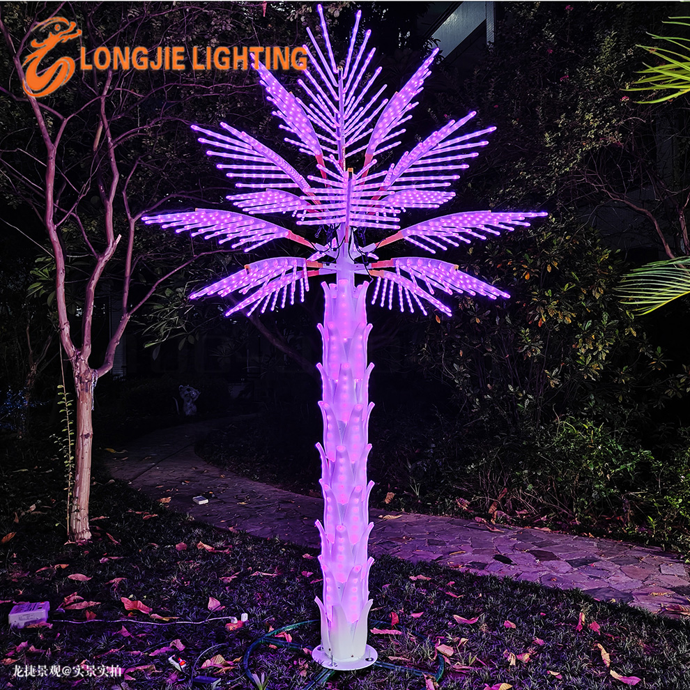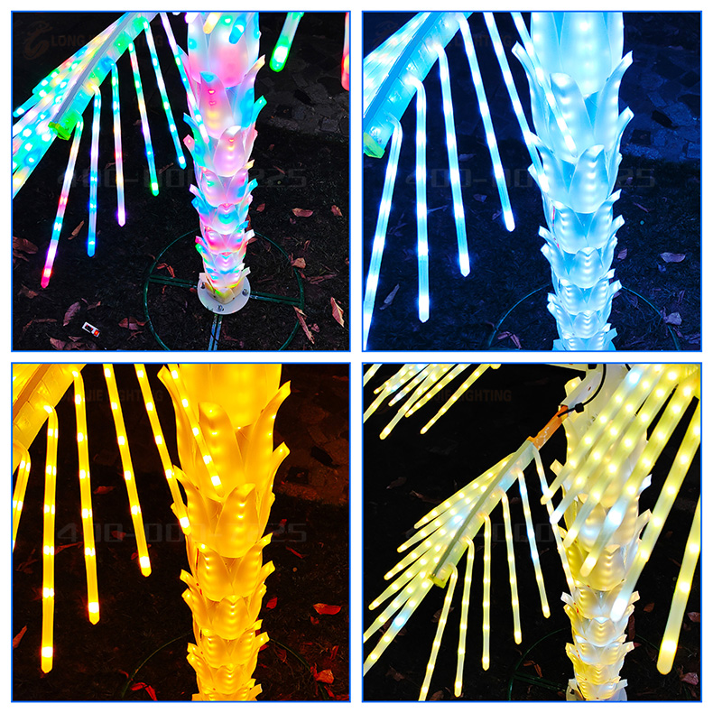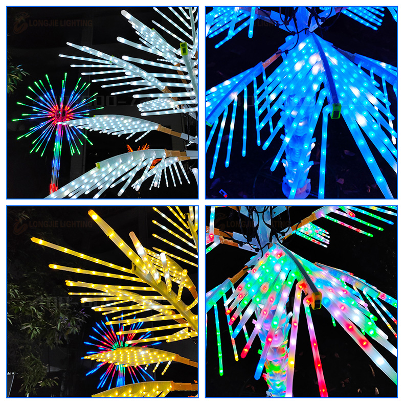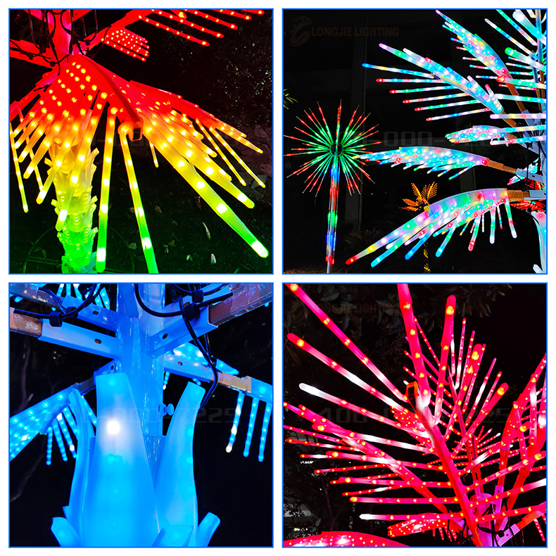 高3米 16叶七彩同步闪油棕树灯 发光椰子树灯海边造型灯