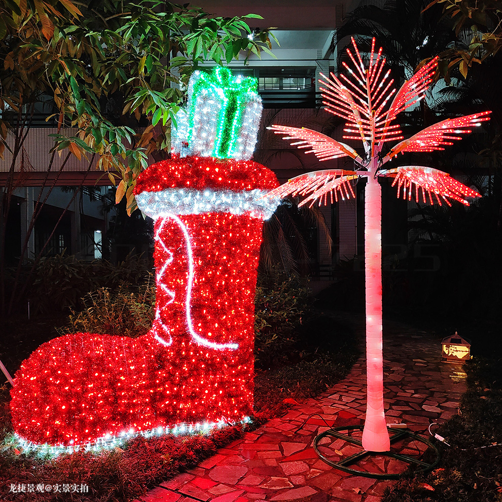 高3米 2米12叶 发光椰子树灯 席草圣诞鞋礼物盒造型灯工厂
